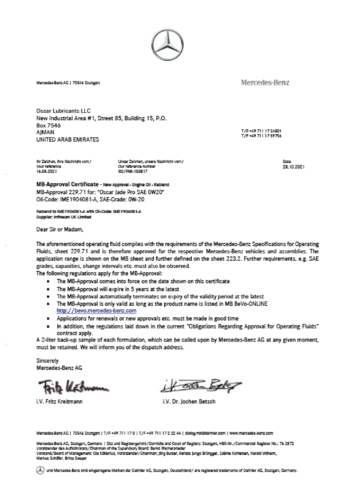 Mercedes-Benz MB 229.71 Approval Oscar Jade Pro SAE 0W20